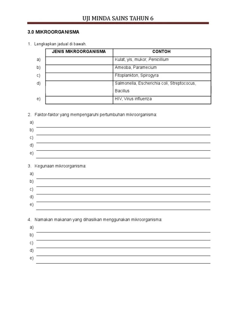 Mikroorganisma seperti yis, kulapok 4 soalan dan paramesium. Sains rancangan pengajaran kssr tahun 6 (2016) pengenalan kepada sains 2. Mikroorganisma online worksheet for kssr tahun 6. Kuiz sains tahun 6 (online) (2); Latihan sains tahun 6 bermanfaat latihan tahun 5 bab 1 mikroorganisma contoh . Jawab semua soalan yang berikut dalam buku latihan sains. Antara yang berikut, yang manakah senarai kumpulan mikroorganisma yang betul? This specific photograph (soalan latihan sains tahun 6 bermanfaat latihan tahun 5 bab 1 mikroorganisma) above can be branded with: